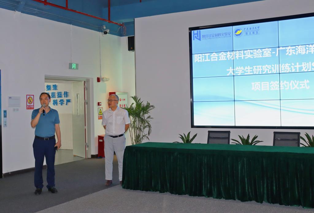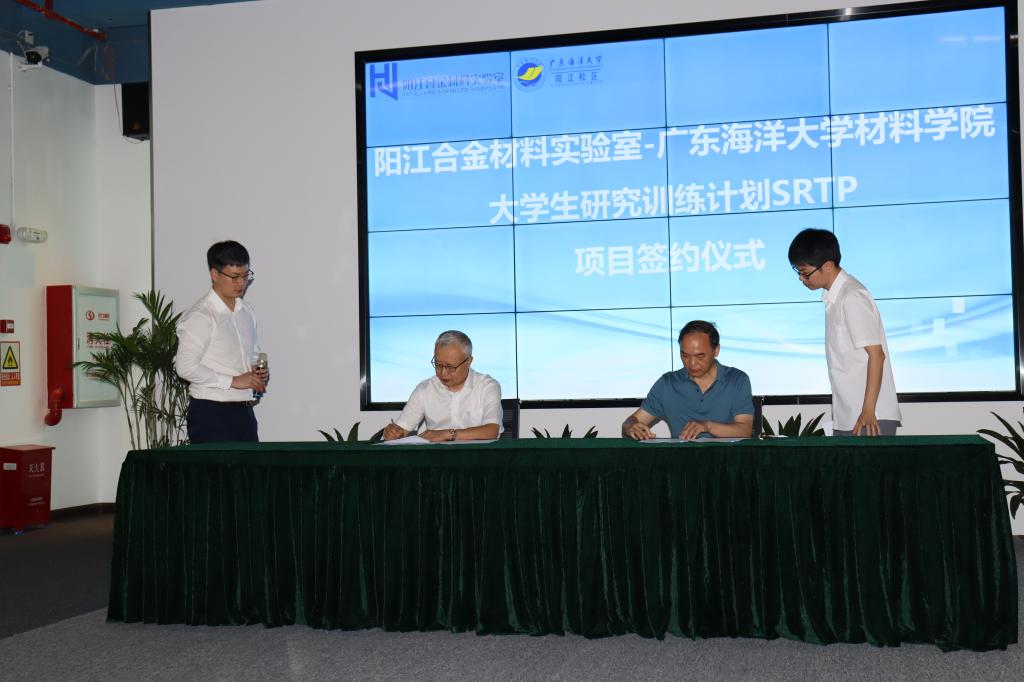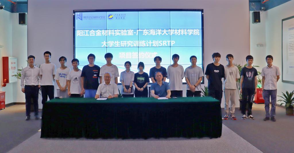 5月25日下午,阳江合金材料实验室-金年会jinnianhuicom材料学院“学生研究训练计划”(SRTP)签约仪式在阳江合金材料实验室举行。阳江合金材料实验室主任尚成嘉教授和金年会jinnianhuicom材料学院院长车晓舟教授代表合作双方签署了项目计划书。2022年度开展2项SRTP项目,共14名学生参加,由郭福建博士、袁胜福博士和李伟章老师担任指导教师。材料学院全体师生见证了项目计划书的签订。