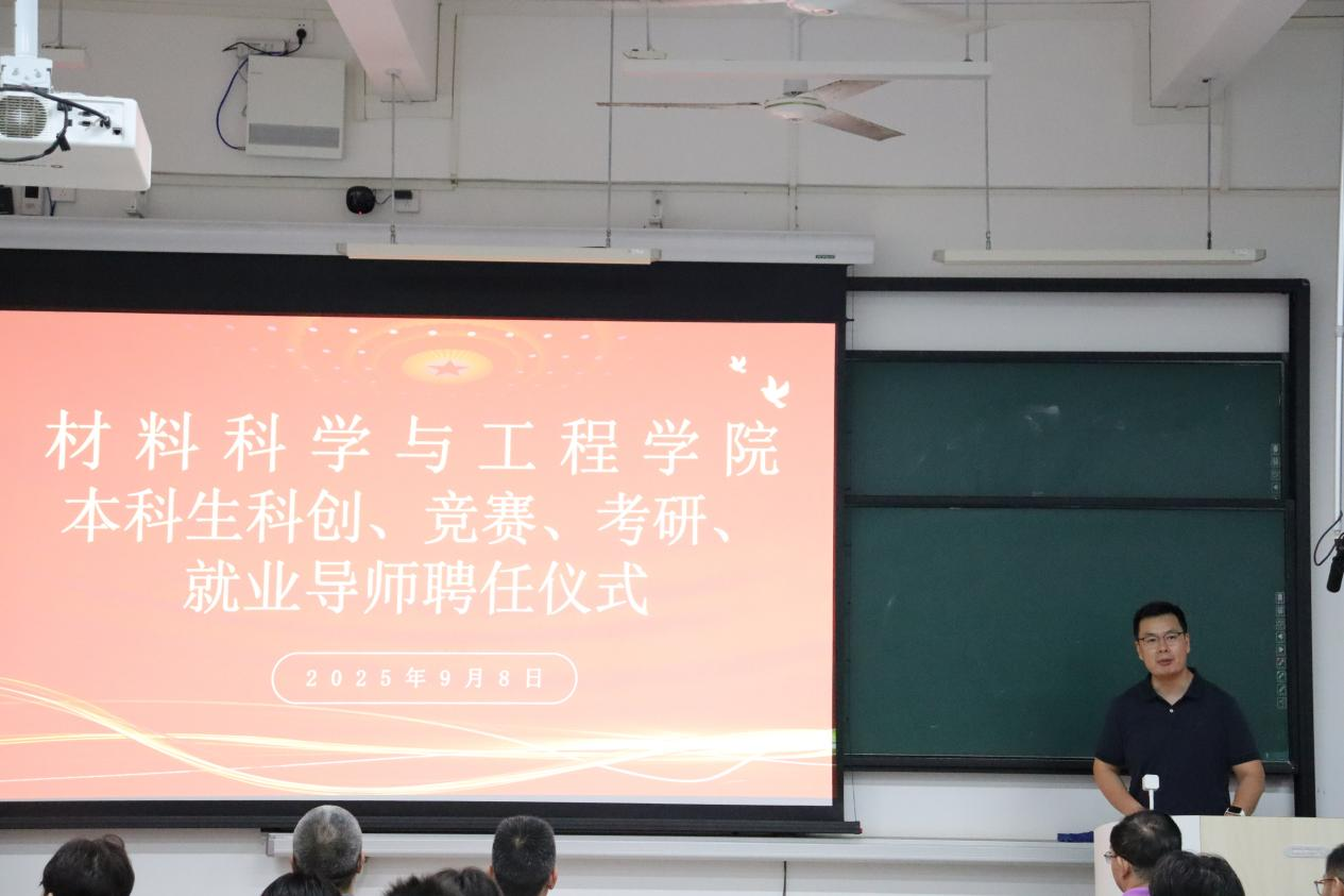 为进一步提升学生创新能力,激发学生参与竞赛热情,助力学生考研及就业,金年会jinnianhuicom材料科学与工程学院于2025年9月8日晚在慎思楼A101室举办了本科生科创、竞赛、考研、就业导师聘任仪式。