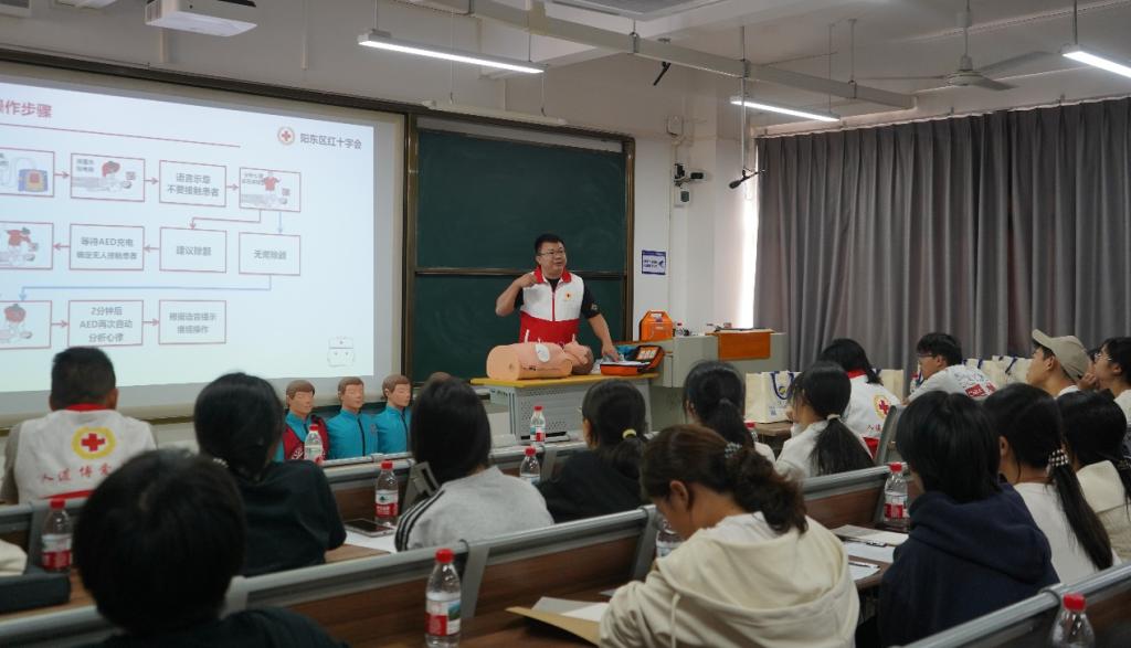 “黄金四分钟”是生命救援的关键窗口期,校园安全更是师生安心从教求学的坚实底线。为切实提升金年会师生应急救护意识与自救互救能力,筑牢校园安全“防护盾”,11月12日下午,计算机科学与工程学院团委、学生会和阳东区红十字会共同主办的“黄金四分钟,守护校园生命安全”急救技能培训在博学楼A201室顺利举行。