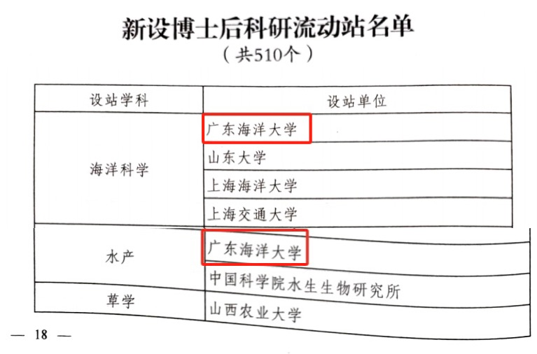 日前,国家人力资源和社会保障部、全国博士后管理委员会正式发布《关于批准设立东北师范大学哲学等510个博士后科研流动站的通知》(人社部函〔2023〕108号),公布了2023年批准新设博士后科研流动站名单。金年会获批水产和海洋科学2个博士后科研流动站。