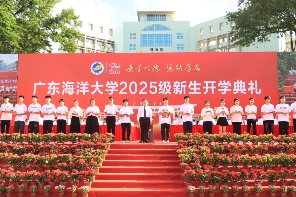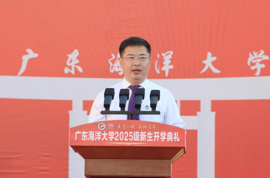 大学之“大”,在于树立大理想、涵养大胸怀、淬炼大实践、拓展大视野,如何在大学找准方向、锤炼本领、实现价值?杨洲向新生们提出四点希望:一是以大理想锚定使命之责,做“心有家国”的追光者。要以历史上扛枪卫国、在战场上诠释“为国为民”理想的海大先辈,以及现今在脱贫攻坚、乡村振兴、海洋牧场等领域发光发热的海大青年为榜样,把“小我”融入“大我”,让理想因“接地气”而坚实,让使命因“有方向”而坚定,让青春在时代的浪潮中绽放光彩。二是以大胸怀涵养厚德之品,做“向上向善”的修心者。要主动涵养“同理心”,尊重差异,团结协作;涵养“平常心”,学会与“不完美”和解,不让焦虑困住前行的脚步;涵养“敬畏心”,坚守学术诚信底线,让品行与学识同步成长。三是以大实践淬炼坚韧之身,做“迎难而上”的奋斗者。要主动走出“舒适区”,在专业学习中攻克技术难点,在科研项目中直面实验挫折,把每一次困难都变成“成长勋章”,让坚韧成为青春最厚重的底色。四是以大视野勇立时代之潮,做“敢想敢为”的开创者。海大人应该站在海洋强国、海洋强省建设的第一方阵,这是属于海大人的机遇与使命。希望同学们珍惜在校时光,夯实专业基础,增长见识,丰富学识,注重培养与海洋新质生产力发展相适应的素质能力,立志成长为胸怀蓝色梦想、堪当时代重任的优秀海洋人才。
