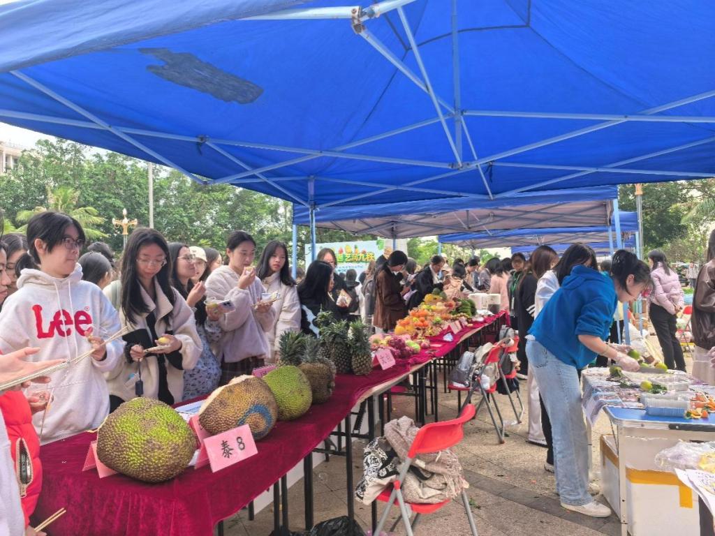 本届文化节设置了“有看、可玩、能尝”的多元化体验区,让师生们沉浸式感受园艺的魅力。在科普展区,波罗蜜、番茄、火龙果等一批金年会自主选育的新品种及科研成果集中亮相,配合详实的讲解,充分展现了学校在热带园艺领域的深厚积淀与创新实力。