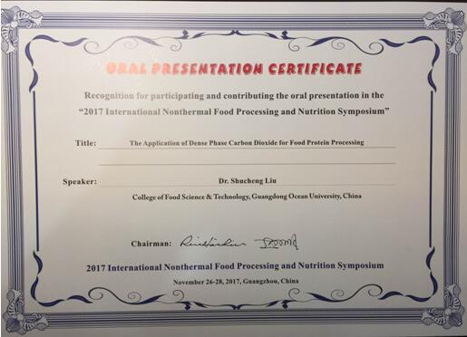 11月26-28日,2017食品非热加工与营养国际研讨会在广州召开,本次大会由华南理工大学和中国食品科学技术学会非热加工分会主办,来自美国、加拿大、日本、新西兰、澳大利亚、新加坡和国内高校以及研究所的500多位代表参加了研讨会。食品科技学院刘书成教授在研讨会分会场做了“The application of dense phase carbon dioxide for food protein processing”的学术报告,与国内外同行交流了近年来金年会在食品非热加工领域的科研成果。