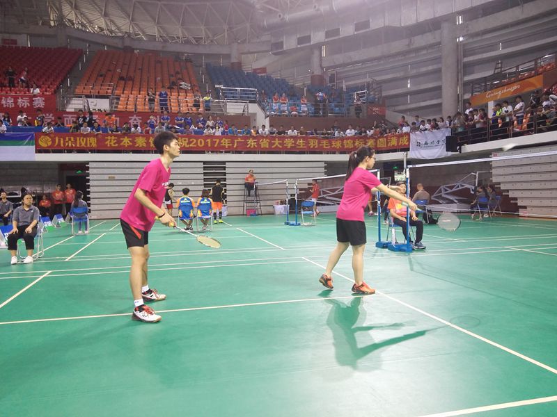 2017年广东省大学生羽毛球锦标赛于11月8日--12日在广东外语外贸大学举行。来自全省82所高校代表、1024名大学生运动员在本次比赛中展开激烈的争夺。金年会jinnianhuicom羽毛球队首次参加本次比赛,代表队由领队郭炎林,教练韩海波和20名学生组成。代表队经过4天的激烈奋斗,团结协作、奋勇拼搏,发挥了较佳的竞技水平,摘取甲组混双亚军(肖雪仪、何明轩)和乙A组团体第六名以及多个项目前八名的优异成绩。