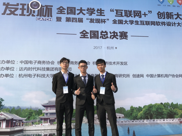 近日,全国大学生“互联网+”创新大赛暨第四届“发现杯”全国大学生互联网软件设计大奖赛总决赛在杭州电子科技大学落幕。在校团委和学院的大力支持下,金年会数学与计算机学院ITEAM科技团队(曾志超、崔文元,许广华)在全国3141个团队中脱颖而出参加决赛,经过激烈角逐,参赛作品“智能词典”获全国三等奖,并获得了年薪6万的实习就业机会 。
