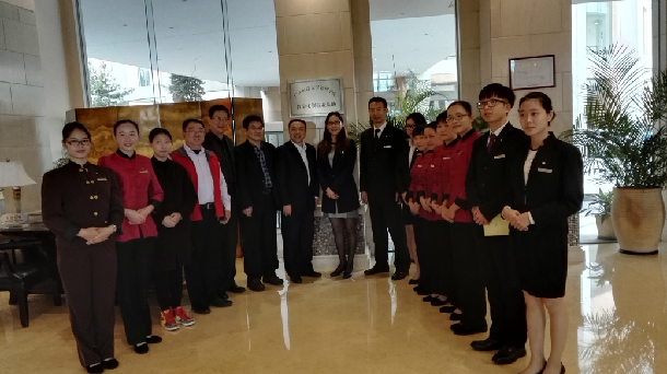 1月10日,一行到阳江中心华邑酒店开展调研,与酒店副总经理罗启东、人力资源部副总监占倩倩等举行了座谈,双方就合作的内容和形式开展交流并达成合作意向。1月11、12日,一行分别到东莞唐拉雅秀酒店、广州圣丰索菲特大酒店开展调研,与酒店负责人举行了座谈,双方签订了合作协议并举行了挂牌仪式,看望了在两个单位实习的同学。