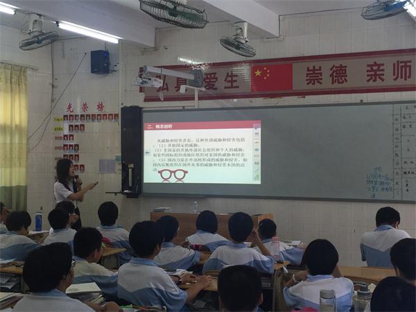 本次普法义教的主题是“守护国家安全,争当爱国先锋”。在岭师附中陈主任的安排下,普法义教志愿者共分成七组,每组主讲人一名,助教一名,对初中一年级共计7个班,约350个中学生进行了授课。而授课内容主要有国家安全教育和《国家安全法》。而为了保证普法义教授课的效果和质量,学院义教主讲人均经过“普法之星”大赛选拔而产生,且受到岭师附中的领导老师的好评。