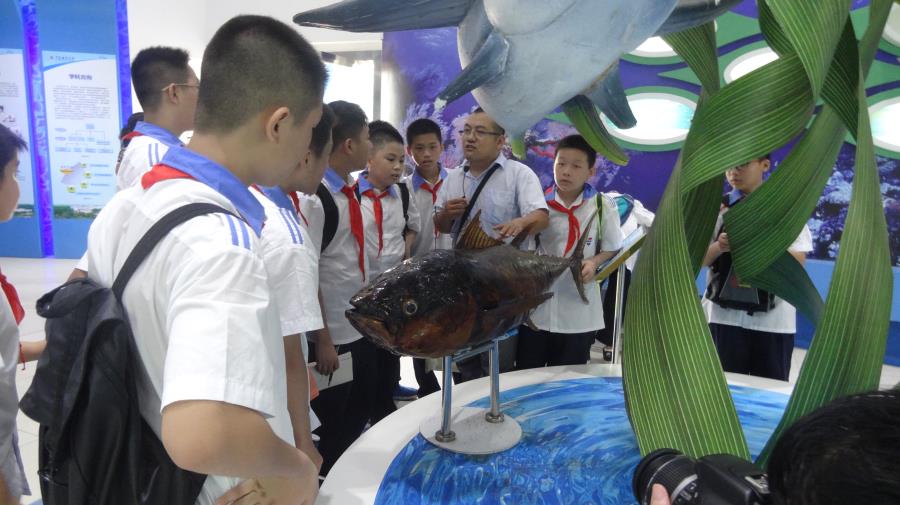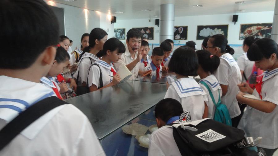 8月26日上午,水生生物博物馆迎来了新学期第一批参观者——来自湛江二中的500余名师生们。师生们兴致勃勃地参观了科研成果展示厅、水族厅和鱼、虾、蟹、贝、藻陈列室。水生生物博物馆馆长劳赞和高级实验师初庆柱分别向大家介绍了博物馆的发展历史和现状,并现场解说了塞鲸、抹香鲸、鲎、金钱龟、红珊瑚、四大名螺等珍贵标本。听了讲解之后,广大师生对各种标本表现出了极大的兴趣,纷纷表示博物馆内3000余件标本让他们大开眼界,增长了见识,学习到了海洋生物知识,同时也增强了环境保护意识和海洋生态保护意识。