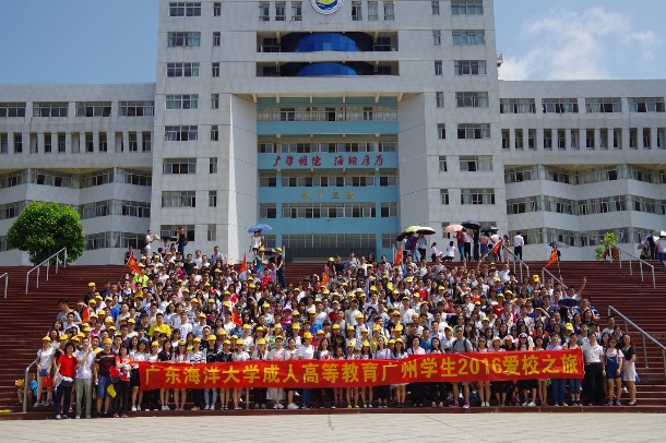 5月15日、29日,金年会成人高等教育阳江教学点和广州教学点分别组织了师生共六百多人回母校举办“爱校之旅”主题活动。他们兴致勃勃地参观了湖光校区校园,并在海洋广场举行了校园活动,在第三饭堂体验在校大学生伙食。