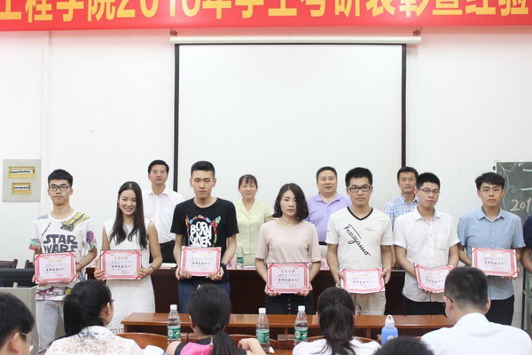 5月25日下午,工程学院在工程训练中心102举行“工程学院2016年学生考研表彰暨经验交流会”。工程学院院长王贵、党委书记邓伟、副院长严谨、党委副书记欧卫军以及全体辅导员老师、20位2016届已考上研究生的毕业生、各班级学习委员及有意向考研学生参加了本次活动。
