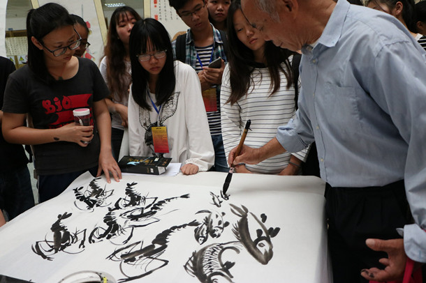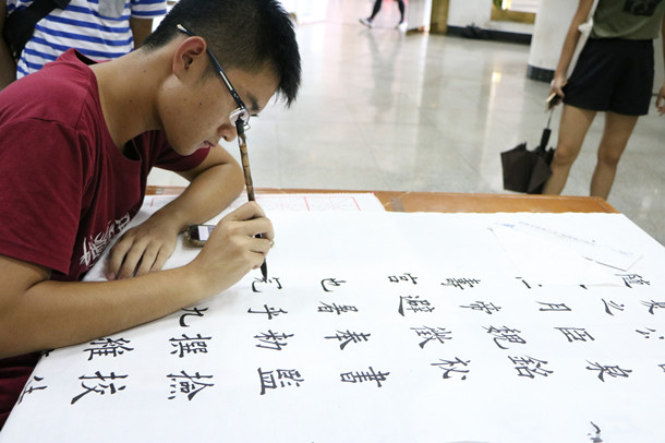 11月20日下午,由校团委、离退休人员工作处和关工委共同主办,校团委媒体发展中心和晨光书画社承办的以“学长征精神,树清风正气”为主题的金年会第四届书画大赛在图书馆一楼预览室展开。来自广东医科大学(湛江校区)、岭南师范学院、寸金学院和金年会书画社代表、爱好者参加了此次比赛。一幅幅遒劲潇洒的书法和展现东西方文化精髓的画作吸引了许多老师、同学驻足观看,还有不少嘉宾即兴挥毫,为慕名而来的师生题字,现场气氛热烈而融洽。