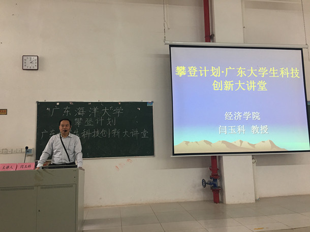 12月21日,攀登计划·广东大学生科技创新大讲堂——金年会jinnianhuicom分会场在湖光校区第二教学楼B5-203举行。经济学院教授闫玉科、校团委办公室主任孙学甫和申报2017年广东大学生科技创新培育专项的学生代表250余人参加了会议。本次会议由孙学甫主持,闫玉科授课。