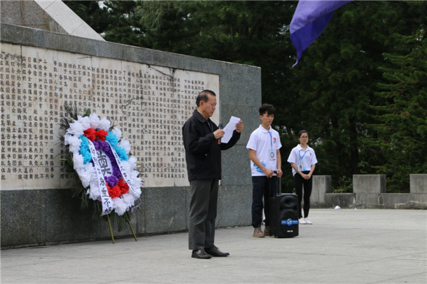 15时整,扫墓仪式正式庄严举行,由校国旗护卫队带领着扫墓人员向烈士纪念碑敬献花圈。关工委副主任秦明双回顾了湛江这座城市的抗争史及湛江人民的光荣革命传统,并强调,作为当代大学生,要有理想、有抱负、有责任、敢担当,为中华民族的伟大复兴不懈努力,顽强拼搏,确保先烈们打下的江山,千秋万代永不褪色。同时要培育和践行社会主义核心价值观,把自己培养成社会主义现代化事业的建设者和可靠接班人。