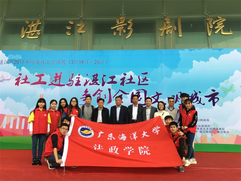 3月19日,法政学院师生、青年志愿者20余人参加了由市民政局主办,市社会工作协会承办的湛江市2017年“岭南社工宣传周”启动仪式暨志愿服务活动。