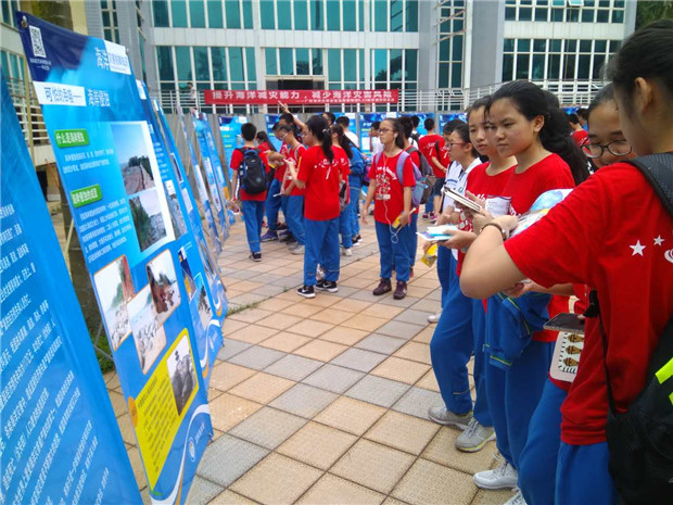 5.12日是我国第九个“防灾减灾日”,为进一步宣传海洋防灾减灾知识,提高全民应对海洋灾害事件能力,水生生物博物馆、中国海洋学会、校团委在水生生物博物馆内举办了以 “减轻社区灾害风险,提升基层减灾能力”为主题的科普活动。来自广西壮族自治区钦州市第一中学和钦州市第二中学的200多名中学生参加了此次活动。