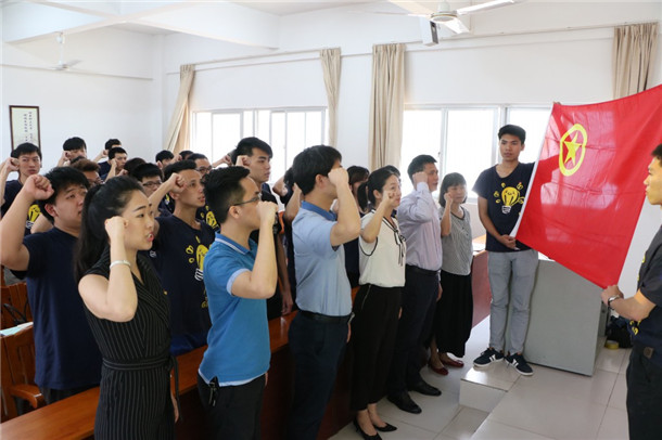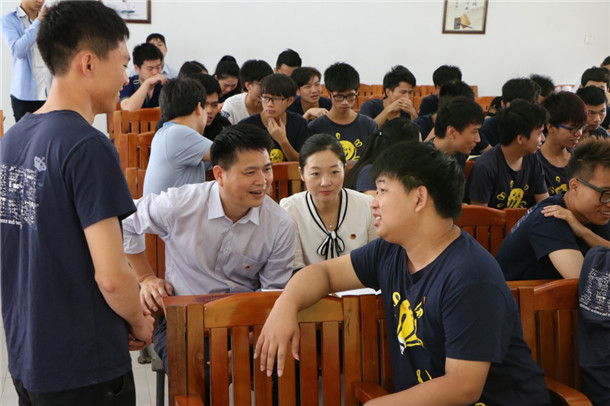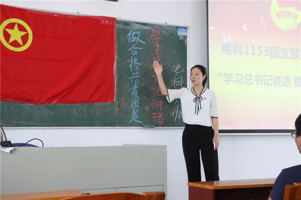 4月27日,团湛江市委副书记王敦滟一行来金年会湖光校区,在第二教学楼B2 203的教室,与电科1153团支部的同学们一起参加“学习总书记讲话 做合格共青团员”主题团日活动。校团委书记尹喜、副书记袁仁广、电信学院团委书记肖伟宏老师等参加了活动。