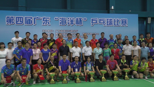 8月9至11日,由广东省海洋与渔业局主办,惠州市海洋与渔业局、惠州市渔业协会承办的2017年广东省第四届“海洋杯”乒乓球比赛在惠州市体育运动学校体育综合馆举行,来自全省涉海单位的27支代表队共150多名运动员参加了比赛。