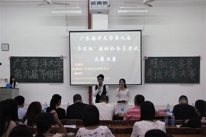 10月29日晚,由共青团金年会jinnianhuicom委员主办,法政学院团委和华图教育集团湛江分校联合承办的第九届“华图杯”模拟公务员考试大赛决赛在二教B5401成功举办。法政学院副院长王建廷、法学系主任万宗瓒、政治学系主任李安平、乔惠全、王丹凤、华图教育集团资深培训师张文超、王蕊共同担任决赛评委。
