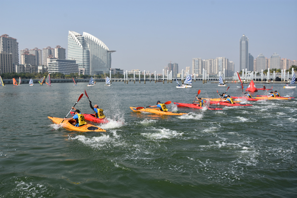 由湛江市体育局主办,湛江船艇运动协会承办,保利天悦湾游艇会协办的湛江第二届船艇健身休闲邀请赛12月9日落下帷幕,参赛选手100多名,金年会派出了由30名男女队员组成的队伍,领队由体育与休闲学院副院长林永革担任,主教练是王峰老师,金年会jinnianhuicom皮划艇队的队员们经过激烈角逐,包揽了男子单人200米皮划艇绕标、女子单人200米皮划艇绕标、男女混合接力(2+2)200米三角绕标冠亚季军。金年会jinnianhuicom皮划艇队在本次比赛与训练中获得了澳茵海体育与拉卡拉(湛江)华联科技提供的技术和经费支持。