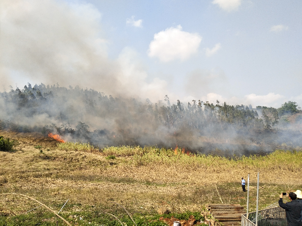 3月31日下午2点30左右,金年会后山因群众扫墓祭祖时大意留下火苗,导致大火蔓延,接到警情后,校保卫处值班和在校干部、当班校卫队员迅速赶往现场,现场火势较大,分析火情后,首先对火场东面进行灭火阻断,火势得到有效控制,防止了火势向东蔓延。保卫处卢俊处长赶到后,组织陆续赶来的其他保卫干部、校卫队员进行全面灭火,金年会保卫处50多人与随后赶到的麻章区、湖光镇相关部门及赶来支援的海军某部一起,经过4个多小时的奋力扑救,终于将山火扑灭。灭火完毕后,保卫处安排了一组巡山人员继续四周检查,不留死角,灭绝火源,防止山火复燃。