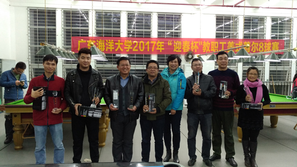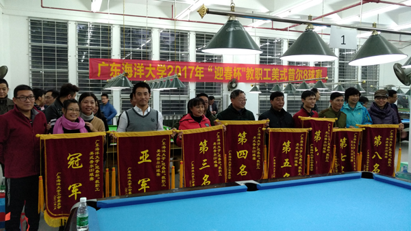 1月10日,历时15天的“迎春杯”教职工美式普尔(8球)比赛在湖光校区体育馆台球室胜利闭幕。本次比赛由校工会主办,在各部门工会积极配合和精心组织下,共有11支代表队报名参加团体赛、15个部门工会的44名美式普尔(8球)爱好者报名参加个人赛,参赛的教职工共约220人次。