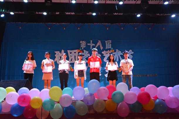 校团委高磊老师对本届社团文体艺术节作工作总结,并表彰了在艺术节中开展的优秀品牌活动及表现优秀的社团,它们分别是:英语能力风采三校联赛(英语俱乐部)、第五届中日文化交流节 (日语协会)、披萨大赛(食品科技协会)、第二届商业模拟秀之小视频大商机(经济协会)、第二十届“海大杯”乒乓球锦标赛(乒乓球协会)、第十五届海大杯毽球赛(毽球协会)。同时,吉他协会、修远汉服社、武术协会、海语笛韵协会、海蓝口琴社以及Beat Box协会为闭幕晚会带来了精彩节目秀。