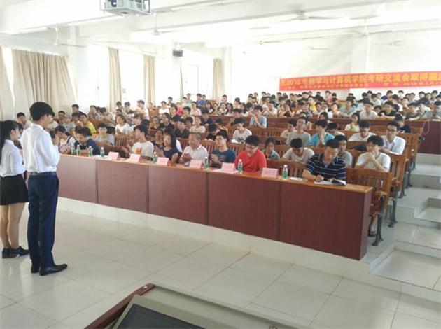 为了表彰先进,动员更多学子参与到考研行列中,数计学院计算机系于5月23日在二教B5301召开2018年考研表彰大会暨经验交流会。院长谢仕义、党委副书记聂杰,系主任彭小红教授出席本次会议,辅导员陈韶伟、樊云霞老师,考研成功的同学、有考研意向的同学及学分绩点3.0以上的同学共200多人参加了会议。