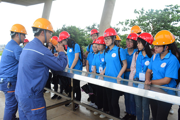 在宝钢湛江钢铁团委书记周利鹏的带领下,学员们首先来到厂东区学培楼观看了“筑梦宝钢”的视频,了解了宝钢湛江钢铁充分利用湛江的沿海优势着力发展循环经济,在实现节能减排并在钢铁产业结构的调整和发展模式上发生的巨大转变。在学习过程中,学员们用心聆听、仔细记录,在答疑环节中更是积极参与,不少同学就湛钢如何提高环保技术、规划生产力发展,以及如何实现生产力提高与环境保护协同发展等问题与讲解人员进行了深入探讨。