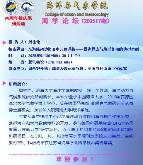 海洋与气象学院“海学论坛”(202517期)