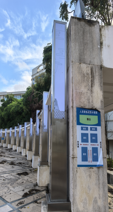 长270MM*宽270MM*2800MM长方体立柱灯,不锈钢拉丝+亚克力板;不锈钢厚度(实厚)为1.5MM,一体切割压铸成型,整体无横向焊接接缝,中间校徽图案采用腐蚀工艺;亚克力板厚度为2.0MM,四面连接一体成型,无横向接缝,含表面文字图案设计印刷;底座钢板厚度不低于12MM,固定孔距为31.5MM,底座盖板为不锈钢材质,厚度不低于0.8MM;光源6000K,48WLED灯,悬垂居中;整体外观附样板图 |