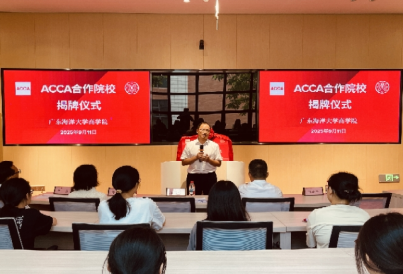 9月11日上午,商学院与ACCA(英国特许公认会计师公会)合作院校揭牌仪式在济航楼举行。ACCA华南区及中国会员关系总监谭颖敏,学校党委常委、副校长周昌仕,阳江校区党委副书记丁永成、教学科研部部长白浚宇,商学院党总支书记植秀成、院长李力、会计学专业及ACCA教学中心全体教师和ACCA创新实验班全体同学出席仪式,共同见证这一推动商学院会计专业国际化发展的重要时刻。揭牌仪式由植秀成主持。