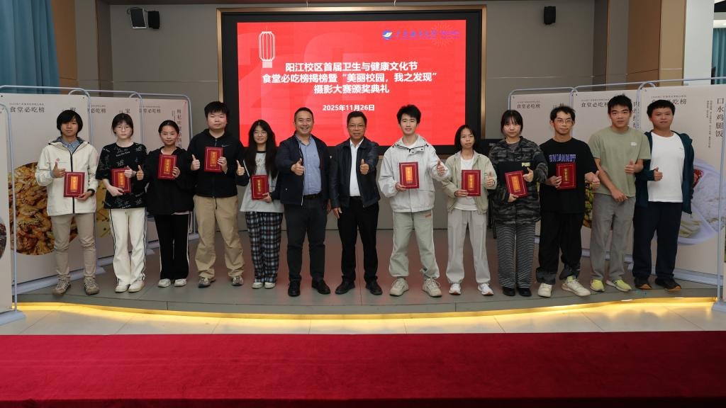 11月26日下午,阳江校区在桃李食苑二楼举行首届卫生与健康文化节颁奖典礼。校区党委副书记丁永成、党委副书记麦冬宁,各学院党委书记、院长,各职能部门和图书馆负责人,师生员工代表共100余人出席活动。活动由后勤服务部部长祝敏丹主持。在“食堂必吃榜”揭榜环节,现场发布了最受师生欢迎的十佳菜品视频。麦冬宁为获奖食堂代表颁发牌匾,嘉禾食苑经理林华凯与桃李食苑经理丘胜伟分别发言,表达了对师生支持的感谢与持续提升餐...