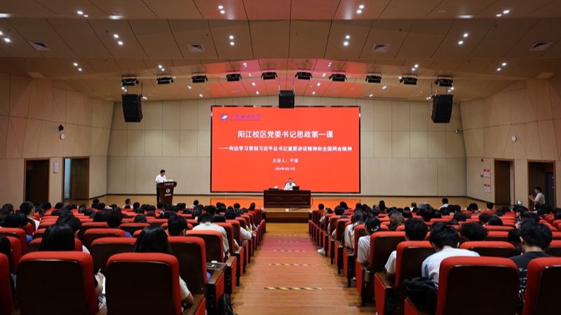 为了传达学习贯彻习近平总书记重要讲话精神和全国两会精神,4月12日上午,全国人大代表、学校党委常委、副校长、阳江校区党委书记宁凌在海纳楼113多功能厅为阳江校区师生讲授2024年春季学期“思政第一课”,校区党委副书记丁永成主持活动,校区师生代表共300余人在现场听课。宁凌作了题为《习近平总书记在两会期间重要讲话精神和全国两会精神》的宣讲报告,重点就2024年全国两会的大会概况、习近平总书记在全国两会期间重要讲话...