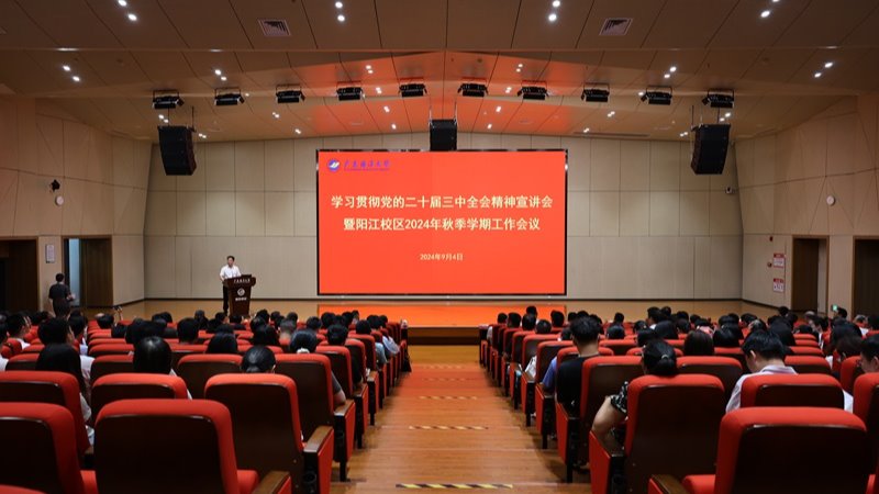 秋启新程,鸿渐携行。为深入贯彻落实党的二十届三中全会精神,传达学校2024年秋季学期工作会议精神,进一步明确校区新学期工作方向,引领校区高质量发展,9月4日下午,校区在海纳楼113报告厅召开学习贯彻党的二十届三中全会精神宣讲会暨2024年秋季学期工作会议。学校党委常委、副校长、阳江校区党委书记、管理办公室主任周昌仕出席活动并作宣讲报告。校区党委副书记丁永成主持会议。校区党委副书记陈永强,全体教职工参加会议。...