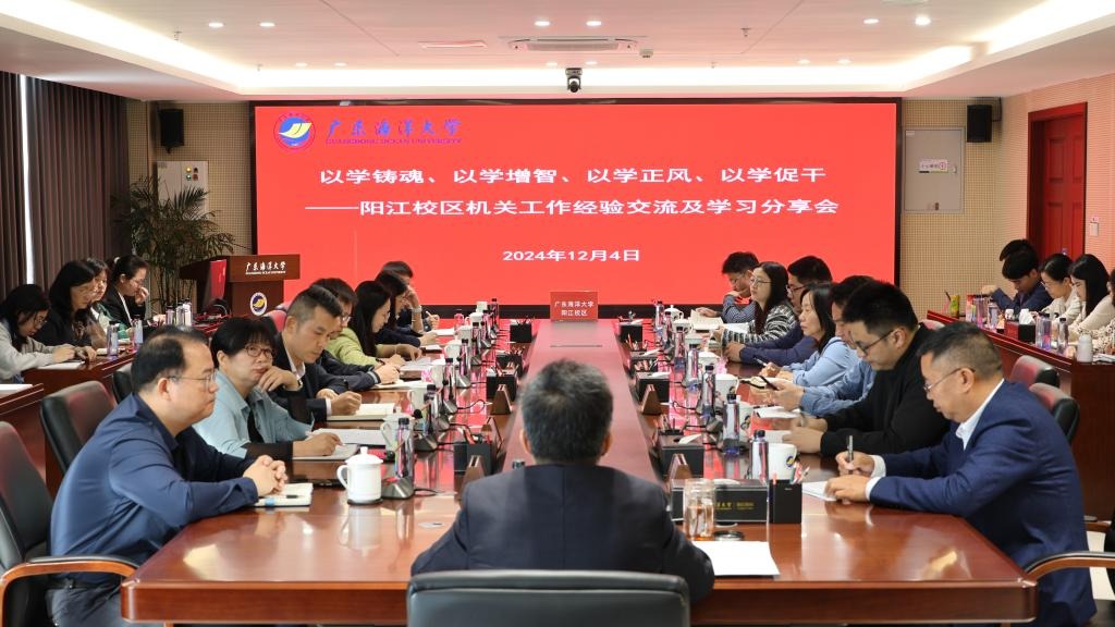 为深入学习贯彻党的二十届三中全会精神,落实学校党建与思想政治工作会议部署,12月4日上午,阳江校区在海纳楼712会议室召开机关工作经验交流与学习分享会,推动校区机关党员干部切实做到以学铸魂、以学增智、以学正风、以学促干,进一步推动校区的高质量发展。校区党委副书记丁永成主持会议。校区党委副书记陈永强以及校区全体机关、教辅单位人员参加会议。丁永成首先向大家传达了学校近期召开的学校90周年校庆倒计时一周年启...