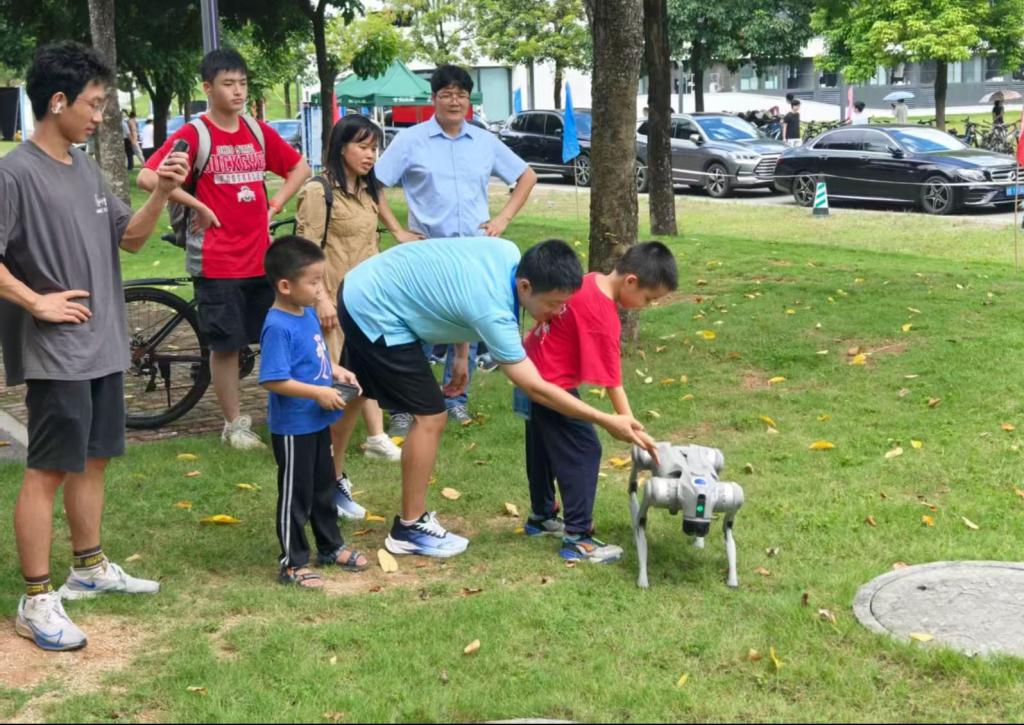 为进一步激发学生学习热情,学院还精心设置了“双创”展示区。无人机、脑机接口和水下机器人等高科技设备吸引了大批学生和家长参与体验。其中,展示的机器狗最为吸睛,蹦跳作揖萌翻全场。一位小朋友追着喊:“我以后也要学计算机,考入金年会jinnianhuicom,做出更酷的机器人!”