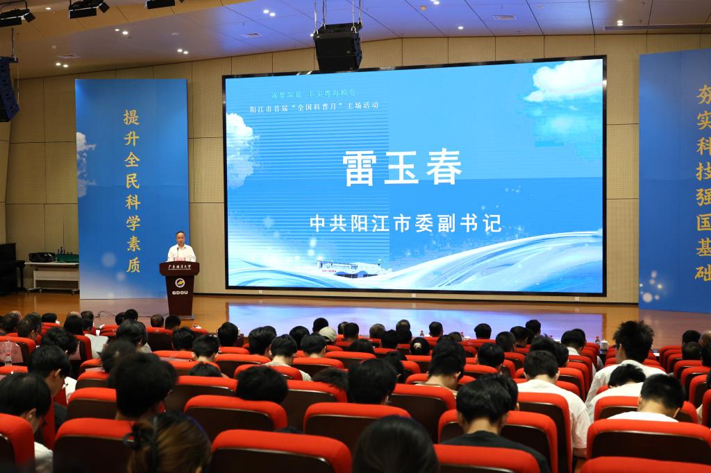 雷玉春在讲话中指出,近年来,阳江市坚持将科普工作作为推动创新发展的重要基础性工程,持续扩大科普服务覆盖面与实效性,有效提升全市科普服务能力与市民科学素质,为深入推进“百千万工程”和建设科技创新强市注入了强劲动能。他希望各级各部门和科协组织以首个“全国科普月”为契机,持续推进科普内容、形式与机制创新,促进科学普及与科技创新深度融合;希望广大教师和科普工作者以提升全民科学素质为己任,引导青少年树立科学志向、放飞科学梦想;希望院士专家发挥学科优势,多为该市科学普及与科技创新建言献策、赋能助力,为阳江未来产业生态的构建和新质生产力的培育注入源源不断的智慧与力量。