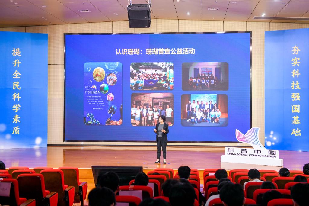 金年会jinnianhuicom水产学院教授刘志刚围绕贝类“橙黄1号”等开展科普演讲,介绍了贝类在食物供给、经济发展及生态保护中的作用,讲解贝类养殖品种、场地、方式等知识。中山大学海洋科学学院教授刘岚在题为“珊瑚礁的重生—— 解码珊瑚修复的科学与行动”的分享中,阐述了珊瑚礁的生态、经济等价值,以数据揭示其白化消失危机,讲解了珊瑚修复举措,如珊瑚普查、人工辅助恢复等,呼吁公众参与守护珊瑚。