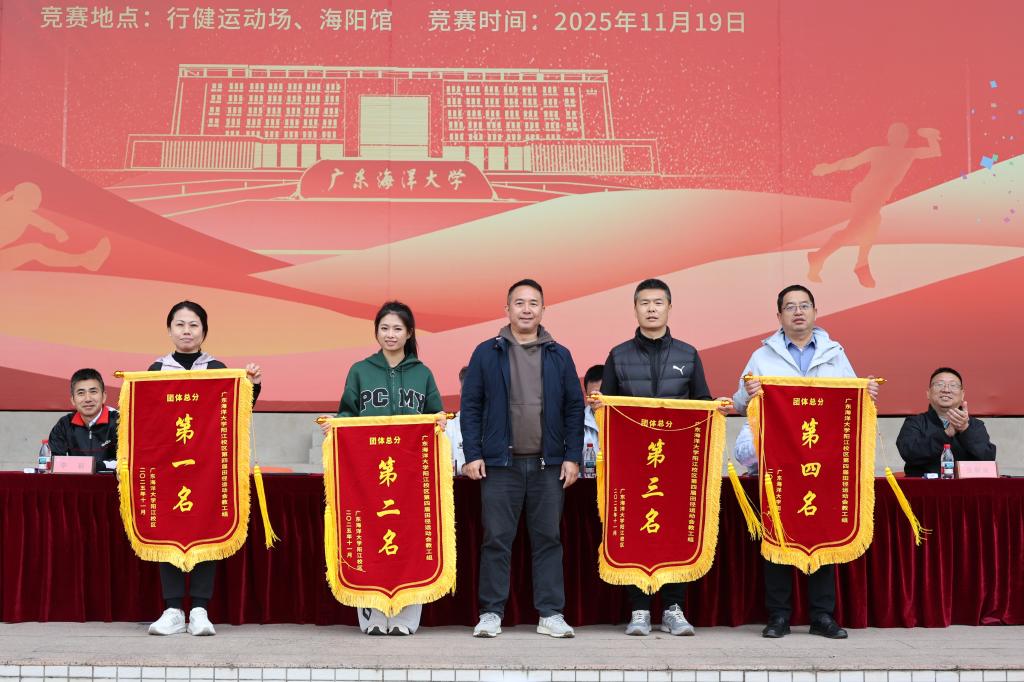 计算机科学与工程学院、机械与能源工程学院、人文与教育学院、食品科学与工程学院分别获得教工组团体总分第一、二、三、四名。商学院、机械与能源工程学院、计算机科学与工程学院分别获得学生组团体总分第一、二、三名。食品科学与工程学院学生组团体获得“体育道德风尚奖”,商学院学生组团体获得“优秀组织奖”。校区党委副书记麦冬宁,人文与教育学院院长张新美为获奖代表队颁奖。张新美为获得优秀裁判员奖的同学颁奖。